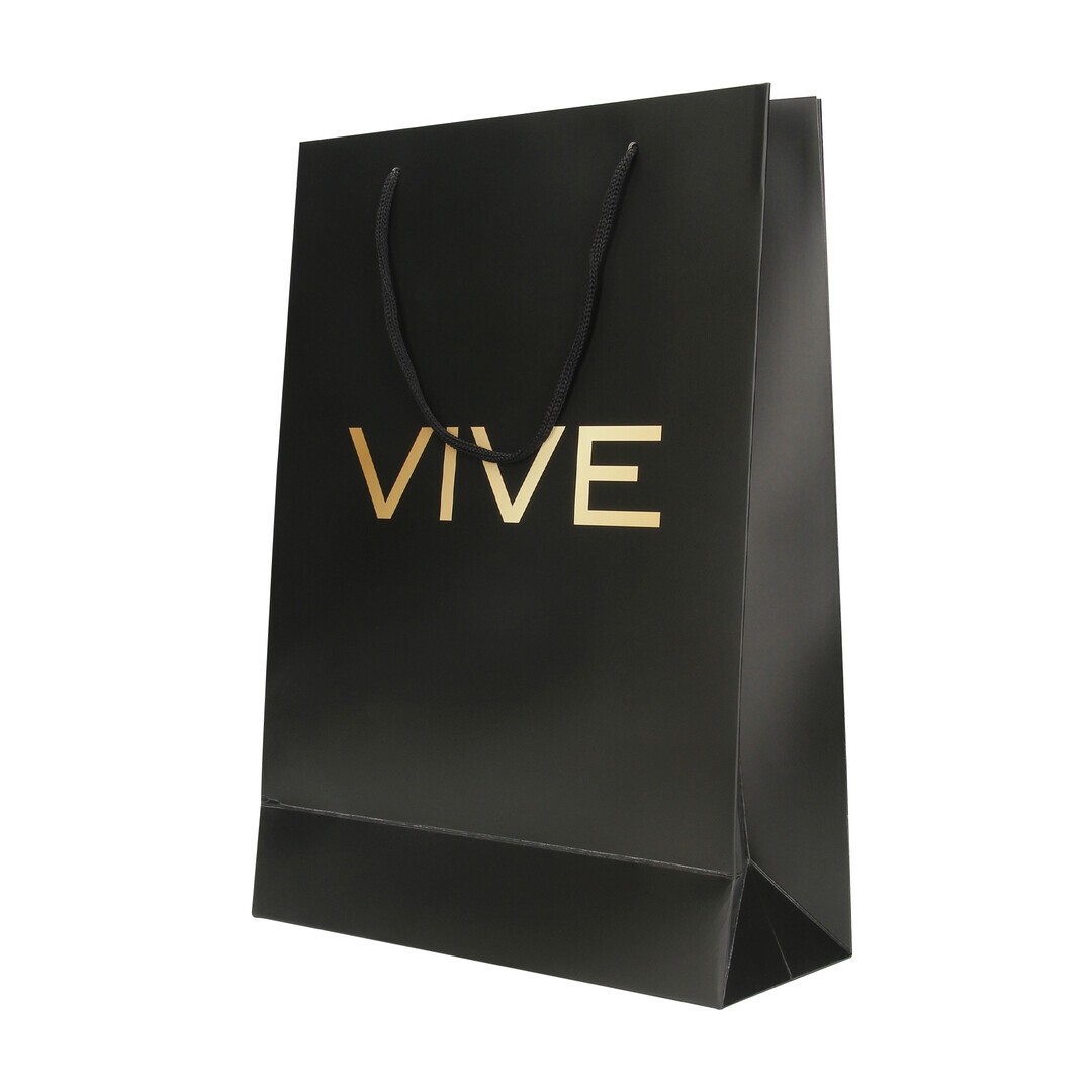 Bolsa de papel para regalo en color negro y con un diseño elegante.