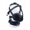 La parte principal sobre la boca refuerza la sensación de control, mientras que las correas ajustables garantizan una sujeción firme y cómoda. Los candados añaden un elemento visual llamativo y permiten un ajuste seguro.