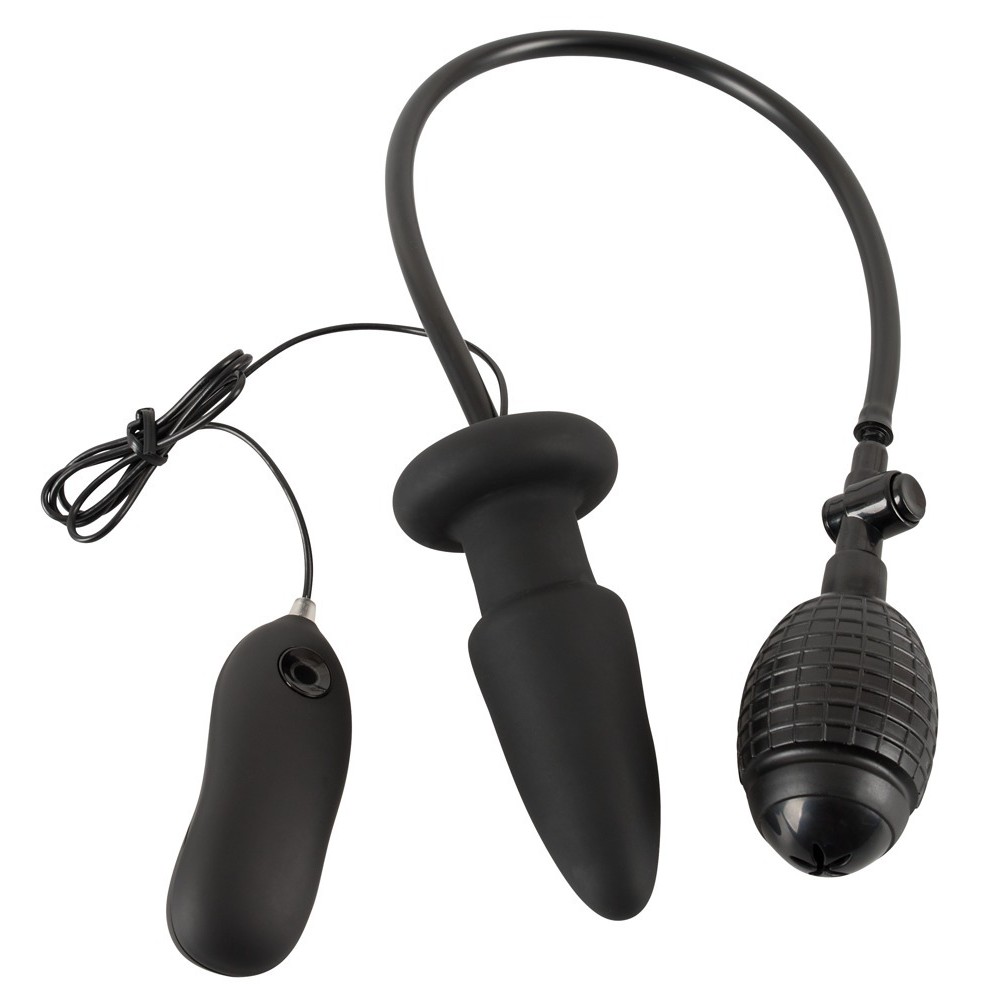 Plug vibrant gonflable avec 7 modes de vibration différents et télécommande filaire. Il dispose d'une pompe manuelle pour le gonfler facilement et d'une valve de dégonflage pour ajuster le volume à la convenance de chaque utilisateur.