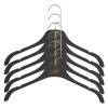 Cintres recouverts de velours avec texte et crochet NOIR de couleur dorée.