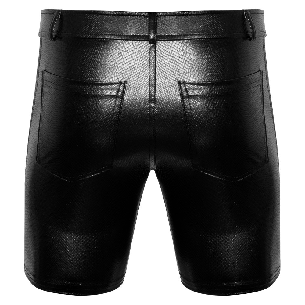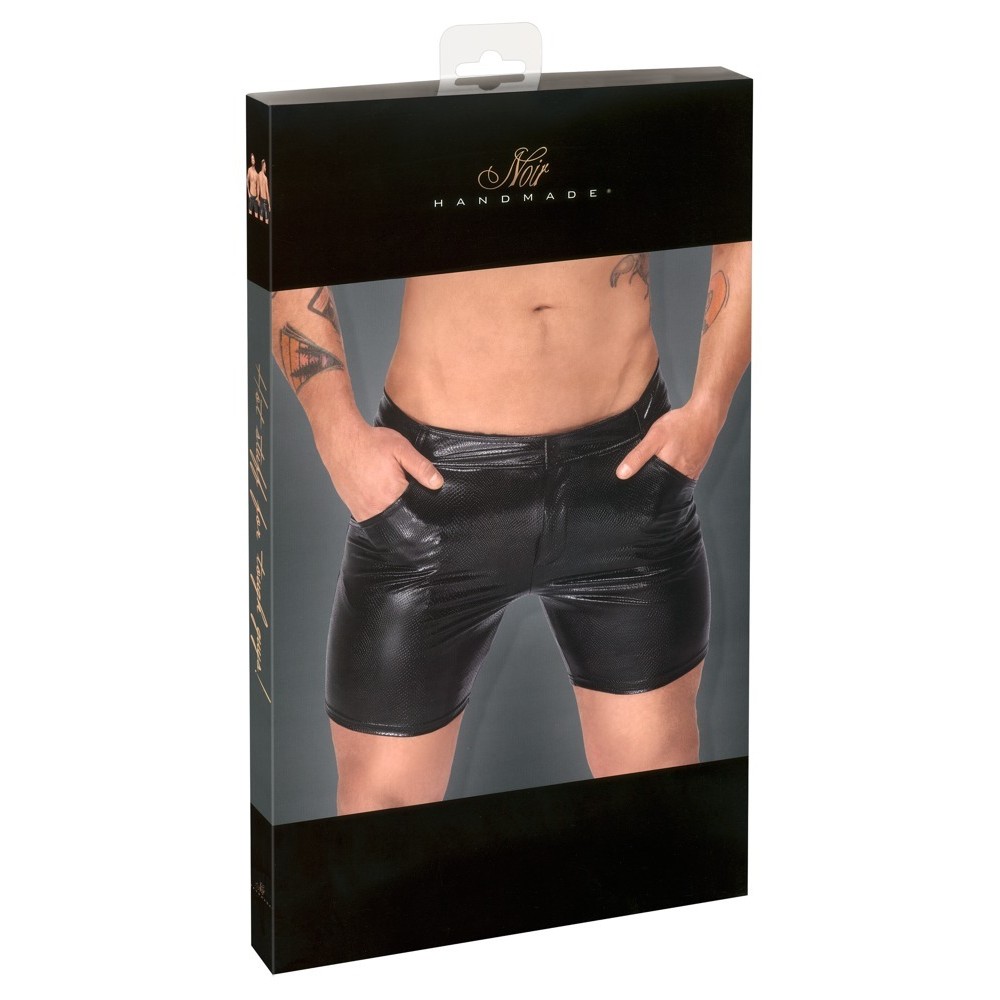 Short extensible de Noir au look peau de serpent scintillante et à la longueur de jambe tendance. Fantastiquement extensible pour une coupe près du corps et un grand confort de port. Fermeture à boutons-pression et à glissière dissimulée sur le devant, ceinture à passants. Poches latérales et arrière