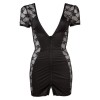 Robe moulante et transparente avec de délicates dentelles sur les côtés, des manches courtes et un décolleté plongeant à l'avant et dans le dos. La fermeture éclair à double sens à l'avant complète ce look sexy et irrésistible.