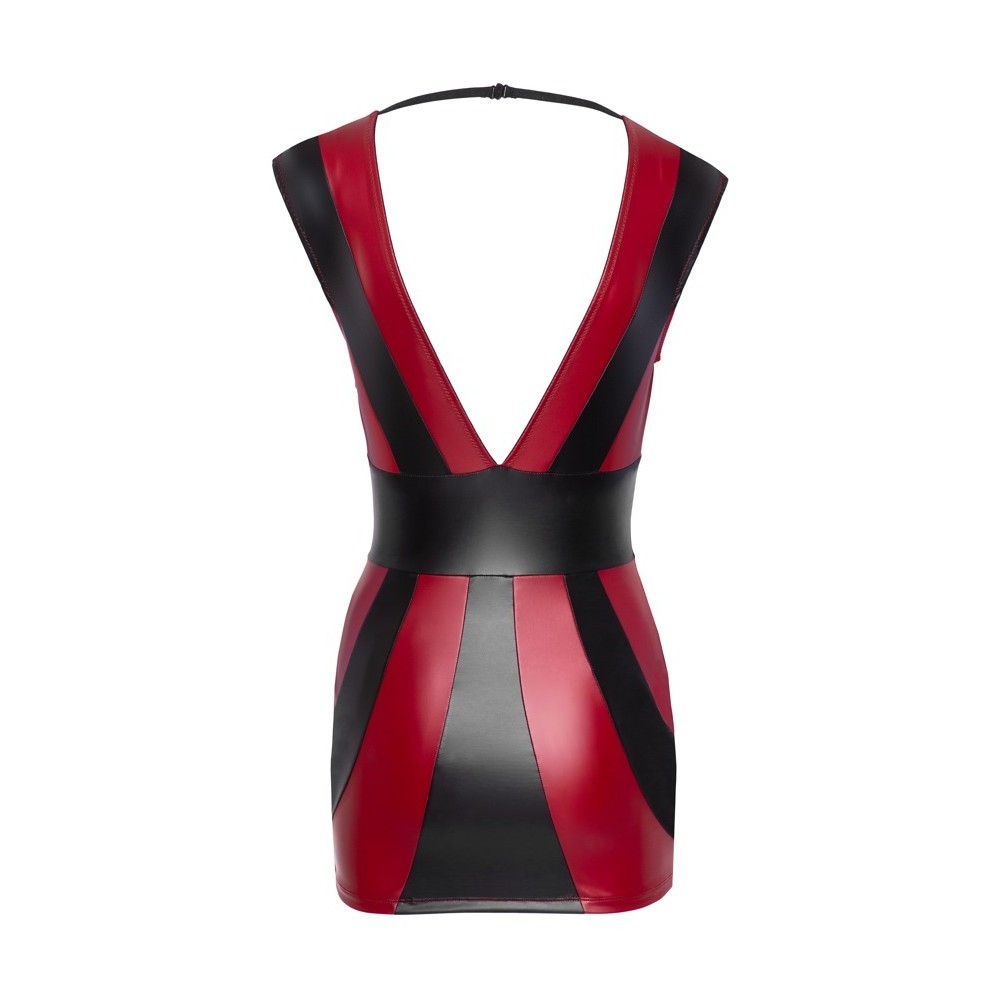 Robe courte Cottelli PARTY, ajustée à la taille, confectionnée dans un tissu mat rouge et noir. Décolleté devant et dans le dos, avec bretelles élastiques et fermeture à ressort dans le dos pour un ajustement parfait. Douce et élastique, elle garantit confort et style audacieux.