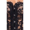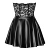 Robe courte sans bretelles de Noir, avec corsage de type corset, confectionnée dans une élégante combinaison de dentelle délicate sur le haut et de powerwetlook sur la jupe. Douce et élastique, elle offre un confort maximal. Le haut s'ajuste au corps comme une seconde peau, avec des renforts de modelage intégrés et une fermeture à agrafes sur le devant. La jupe luxueuse en powerwetlook mat scintillant présente un effet ondulant séduisant.