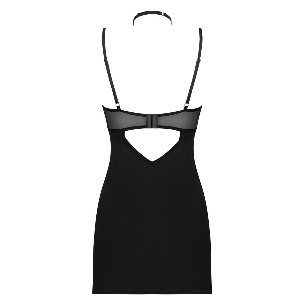 Élégante nuisette noire Selinne d'obsessive comprenant un string assorti. Les deux sont en microfibre douce et extensible. La nuisette a des armatures en rose contrastant. Le dos ouvert est doté d'une fine bande de résille et d'une fermeture à crochet réglable. La nuque et les bretelles sont également réglables pour un ajustement parfait.