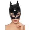 Le demi-masque Black Level est fabriqué en vinyle noir brillant et présente un design inspiré du chat, avec de petites oreilles et de grandes ouvertures en forme d'yeux félins, créant un effet séduisant et mystérieux.