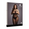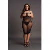 Robe longue à col roulé et encolure dos-nu, avec motifs en résille contrastés. Convient aux tailles XXL à 5XL. 92 % nylon et 8 % élasthanne. Lavage à la main ou cycle délicat à l'eau froide. Sécher à plat, ne pas passer au sèche-linge ni repasser. String non inclus.