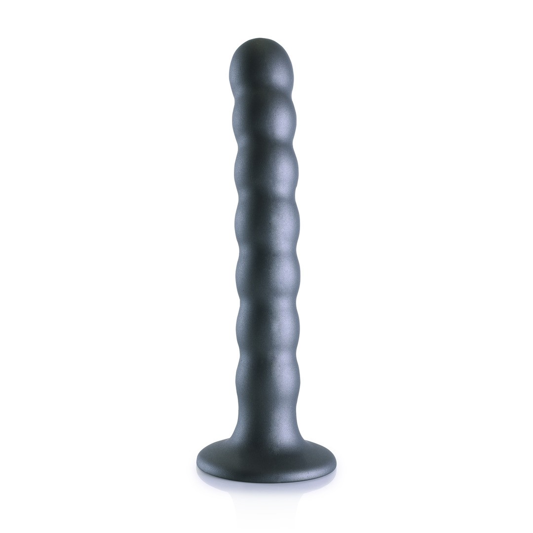 Gode en silicone Ouch! Premium pour le point G, avec ventouse, perles stimulantes et élégante couleur métallique.