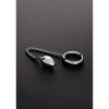 Ce jouet combine deux plaisirs intenses en un seul: un anneau pour pénis massif et lourd d'un côté et un œuf anal stimulant de l'autre. L'anneau a un diamètre interne de 4,5 cm, tandis que le plug anal a un diamètre de 4,5 cm et une longueur insérable de 5,5 cm, reliés par une chaîne métallique de 19 cm.