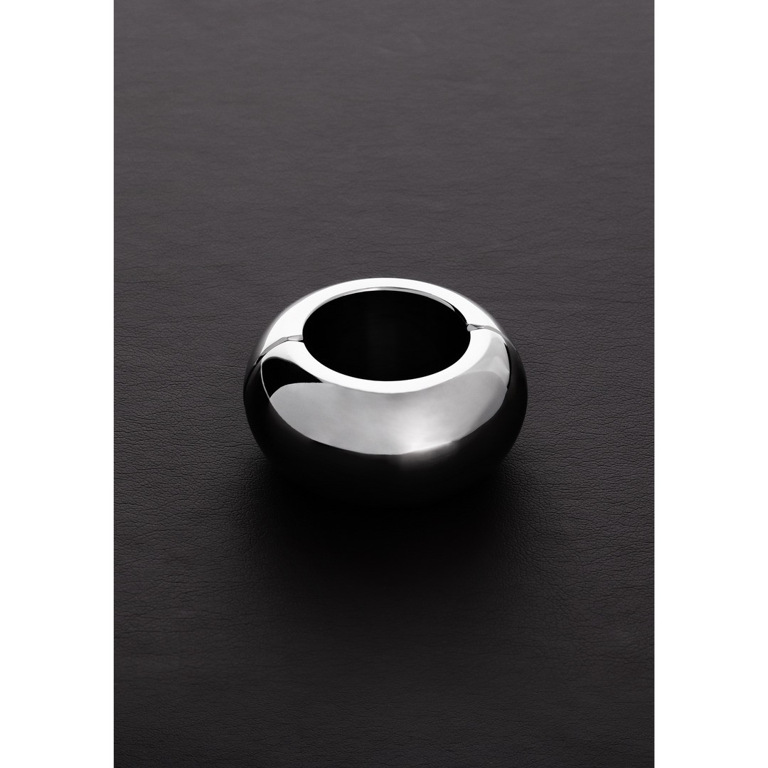 Extenseur de testicules ovale en acier inoxydable, 3,1 cm, avec fermeture à clé Allen pour un plaisir intense et sûr.
