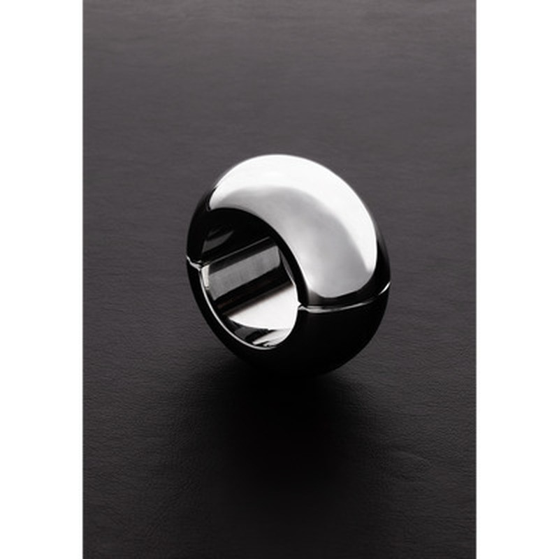 Extenseur de testicules ovale en acier inoxydable, 4,1 cm, avec fermeture à clé Allen pour un plaisir intense et sûr.