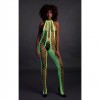 Catsuit néon UV avec décolleté halterneck et entrejambe ouvert, en rose ou vert néon, pour un look audacieux qui illumine la nuit.