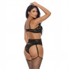Ensemble 3 pièces avec soutien-gorge à armatures, string taille haute et porte-jarretelles en dentelle florale.