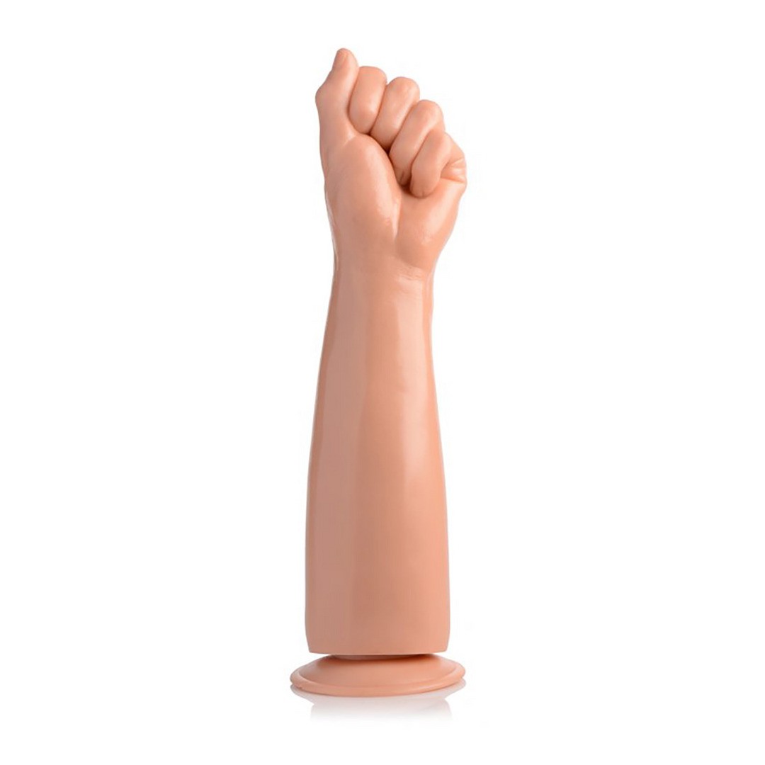 Gode en forme de poing avec ventouse puissante, sans danger pour le corps et idéal pour des pénétrations profondes et intenses, vaginales ou anales.