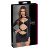 Robe courte, moulante et à manches longues de Cottelli PARTY, confectionnée dans une matière douce et élastique. Elle présente un devant sexy et révélateur avec 3 découpes torsadées et des volants. Un anneau en strass brillant entre les bonnets ajoute une touche supplémentaire.