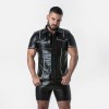 Chemise à manches courtes en cuir synthétique perforé avec passepoils contrastés.