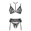 Découvrez l'exceptionnel ensemble de lingerie Noemi set black, composé d'un soutien-gorge, d'un string et d'un porte-jarretelles, qui vous enchantera sans aucun doute, vous et votre partenaire.