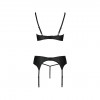 L'ensemble comprend un soutien-gorge dont les bonnets sont renforcés par des os de baleine, assurant un maintien et un modelage parfaits. Le délicat string et le porte-jarretelles complètent l'ensemble, le rendant encore plus séduisant.