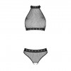 Cet ensemble deux pièces comprend un haut qui laisse le dos nu, soulignant l'élégance féminine, et un string avec une coupe irrésistiblement sensuelle dans le dos.