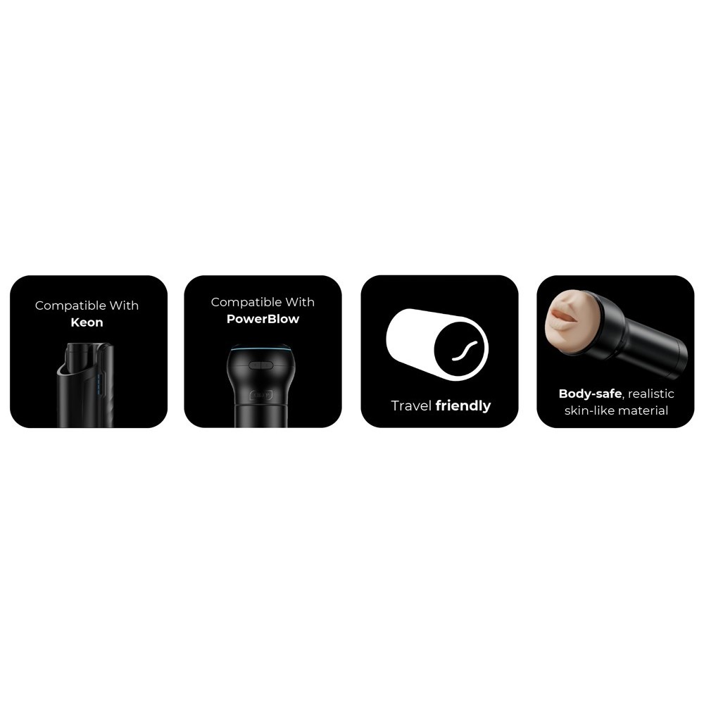 Le masturbateur Feel Stroker Mouth l'accessoire de succion PowerBlow dans un ensemble combo de Kiiroo. Le duo dynamique pour des sensations de fellation intenses avec contrôle de la succion. Pratique, discret et adapté à tous les pénis.
