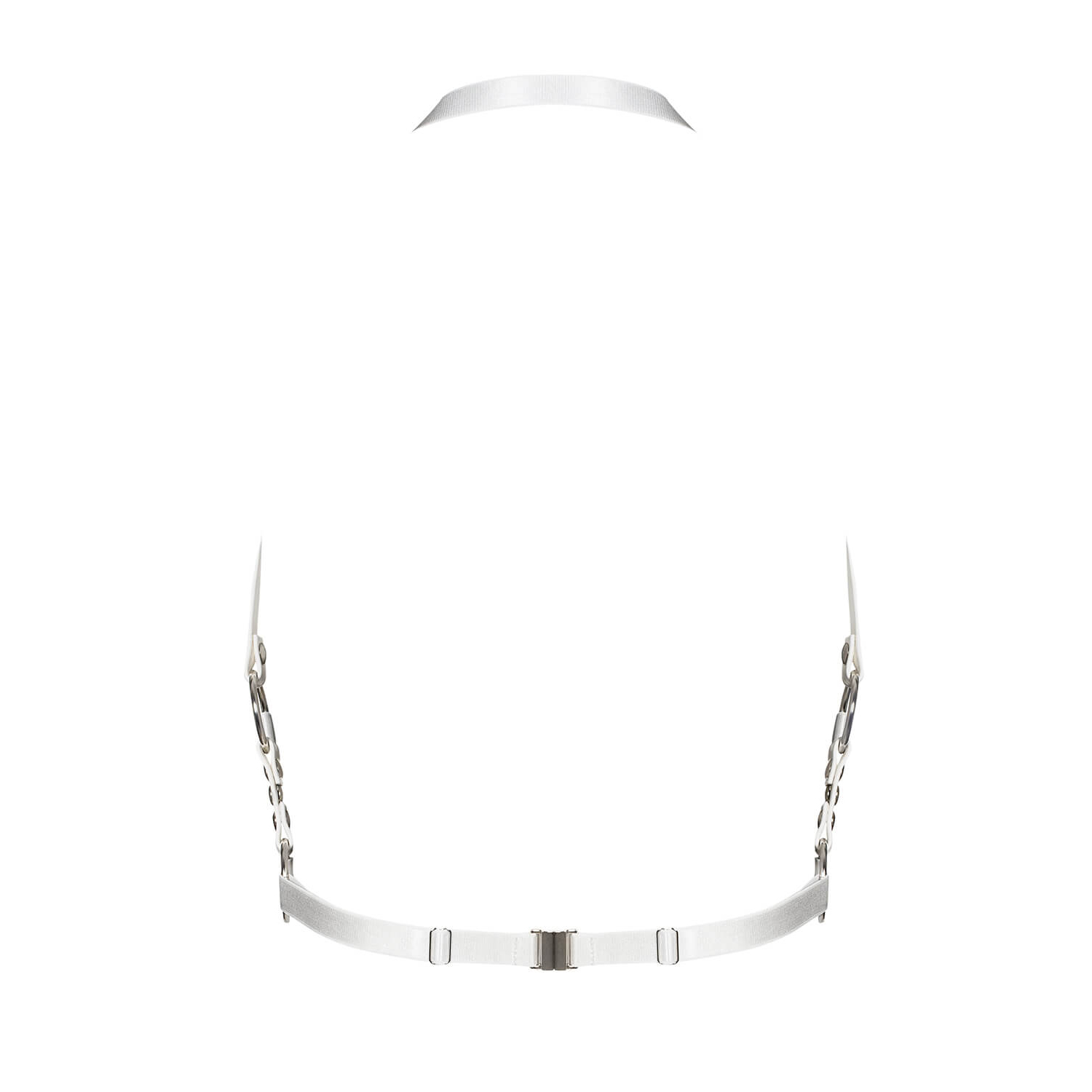 Copricapo A759 estremamente elegante con finiture in pelle è così seducente! Vestilo con piacere e sentiti sensuale. Cinghie bianche, anelli d'argento allettanti e un aspetto spettacolare: una tale combinazione riscalderà l'atmosfera della tua stanza!