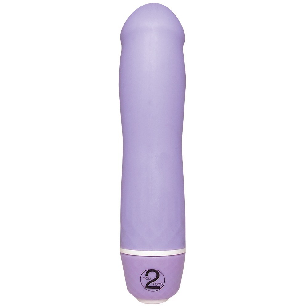 Vibratore viola a forma di pene, dotato di sette modalità di vibrazione per una stimolazione varia e intensa.
