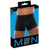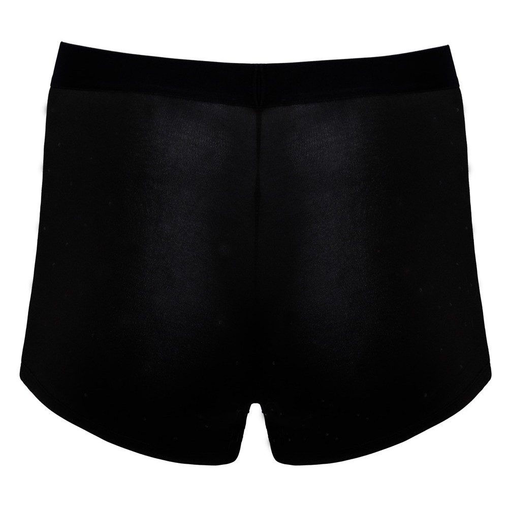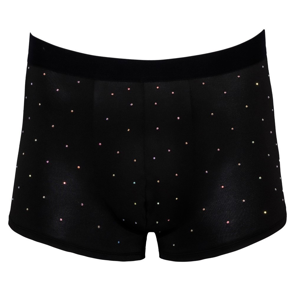 Boxer aderenti e in vita alta di Svenjoyment, realizzati in microfibra nera e decorati con strass sul davanti. Meravigliosamente morbidi ed elastici, con fascia in vita larga e tessuta per il massimo comfort.