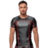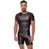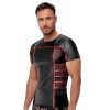 Maglia aderente a maniche corte di NEK, in nero opaco con strisce rosse a contrasto. Presenta inserti in maglia sottile trasparente sui fianchi e sotto le ascelle. Morbida ed elastica su tutta la superficie, garantisce il massimo comfort e un look di grande effetto.