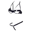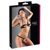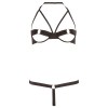 Questo completo realizza tutte le fantasie! Il reggiseno con ferretto si distingue per le coppe aperte e gli anelli metallici a forma di ferro di cavallo che circondano i capezzoli, con pratico gancio sul retro. L'elegante scollo all'americana si apre facilmente con una chiusura a clip. Il sexy perizoma, con elastico in vita e anello metallico sul davanti, lascia solo un morbido nastro di tessuto a coprire l'inguine: un vero spettacolo per gli occhi. Il tuo amante non riuscirà a toglierti le mani di dosso quando ti vedrà con questo completo!