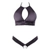 Questo elegante completo si distingue per il pizzo delicato e il tessuto trasparente sul busto. Ideale per una serata eccitante o da indossare in modo provocante sotto i vestiti durante il giorno. Il perizoma presenta una striscia di pizzo in vita, è aperto sul cavallo e include una piccola catena nella zona inguinale per un tocco di audacia in più.