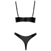 Completo di Cottelli LINGERIE composto da reggiseno con ferretto e perizoma stile Rio, in elegante tessuto nero dall'aspetto opaco. Si distingue per le spalline elastiche decorative e gli anelli argentati sullo scollo e sulla parte anteriore del perizoma. Il tessuto elastico garantisce una vestibilità perfetta e confortevole. Il reggiseno ha spalline regolabili e chiusura con gancio sul retro.