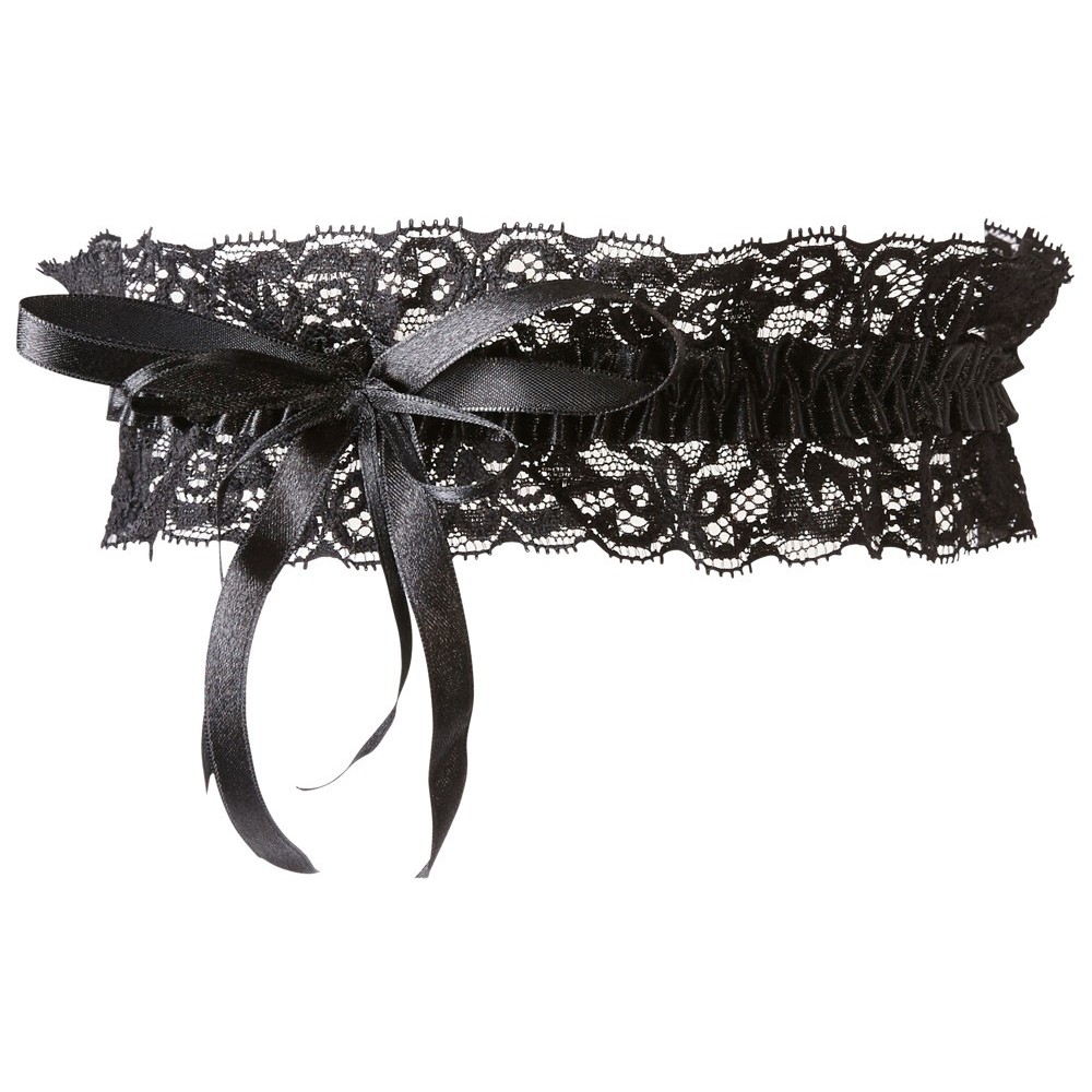 Giarrettiera elasticizzata in pizzo con un fiocco decorativo in raso.