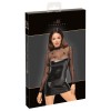 Abito corto a maniche lunghe di Noir dal taglio aderente. Elegante effetto wetlook nero con parte superiore in tulle elastico trasparente, abbinato con delicatezza al velluto. Morbido ed elastico, garantisce una vestibilità perfetta con il massimo comfort. Piccolo collo alto con chiusura a gancio sul collo. Sul retro, un ampio scollo a forma di buco della serratura e una breve cerniera.