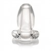 Plug anale cavo grande e trasparente con base confortevole, ideale per la visibilità e i giochi con liquidi, compatibile con lubrificanti al silicone e ad acqua.