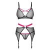 Il set di reggicalze a 3 pezzi, Novenes di Obsessive, è composto da reggiseno senza fili, reggicalze e perizoma.