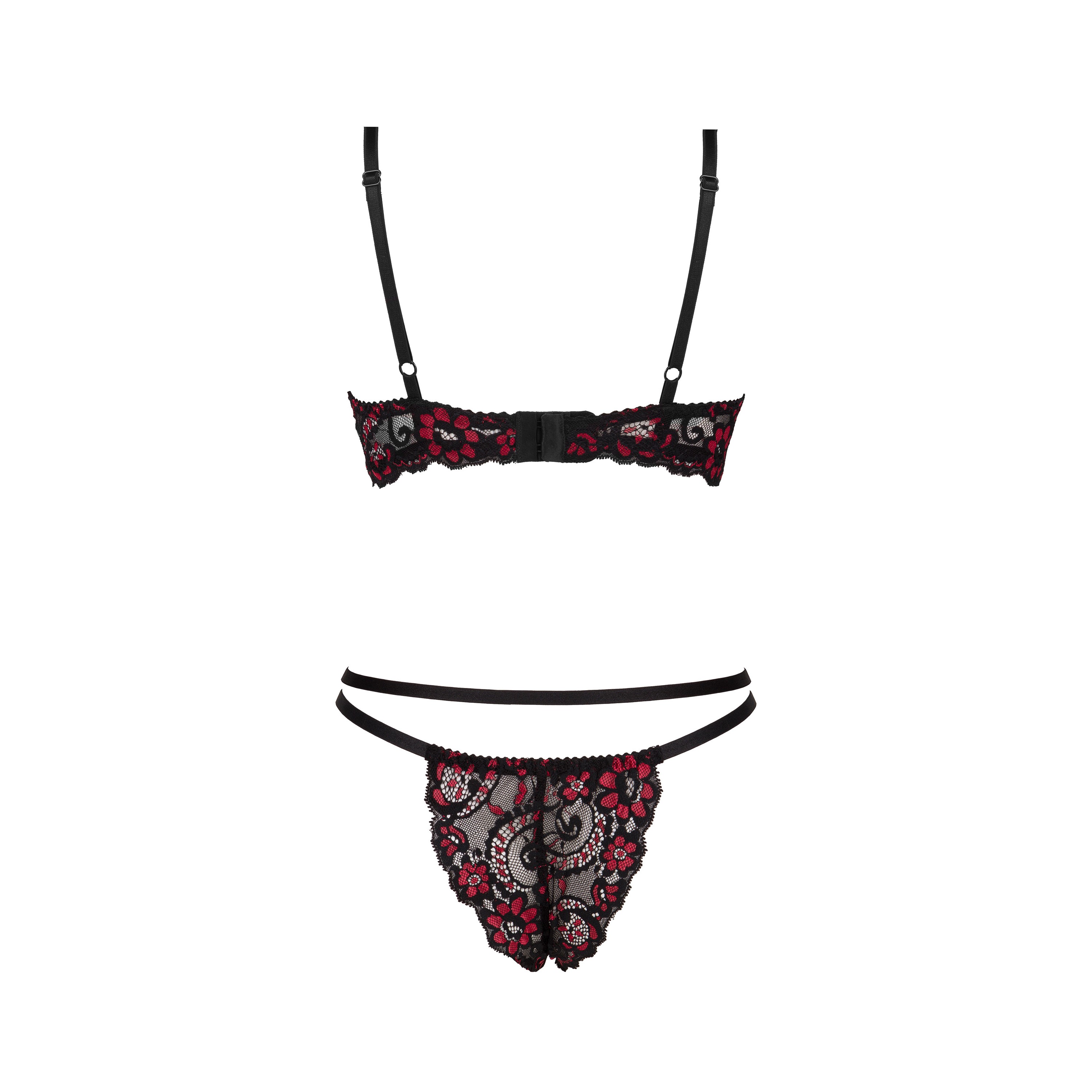 Design: Rosalinda è un set di lingerie in pizzo nero con fiori rossi scintillanti. Il reggiseno ha spalline regolabili che mettono in risalto la scollatura. Le mutandine con spalline regolabili completano perfettamente il reggiseno, creando un duo sensuale. Questo set mette in risalto le curve femminili, aumentando la fiducia in se stessi.