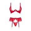 Set di lingerie classica in rosso, composto da reggiseno, mutandine e reggicalze.