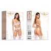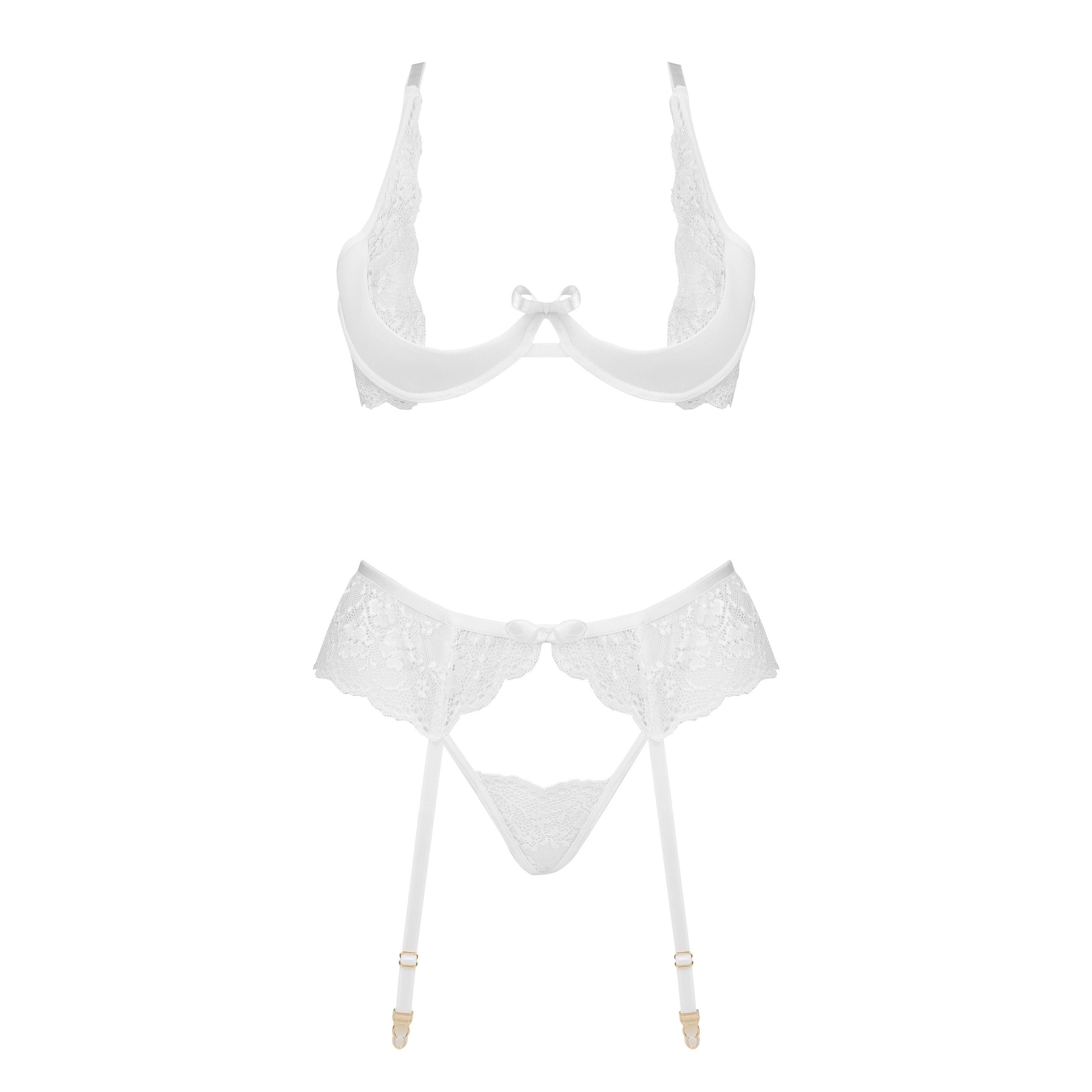 Vi presentiamo il sensuale set di lingerie bianca Rose set, che comprende reggiseno, perizoma e reggicalze.