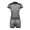 Il set comprende una T-shirt a maniche corte e dei boxer. L'intero completo è realizzato in delicato tulle abbinato alla pelle.