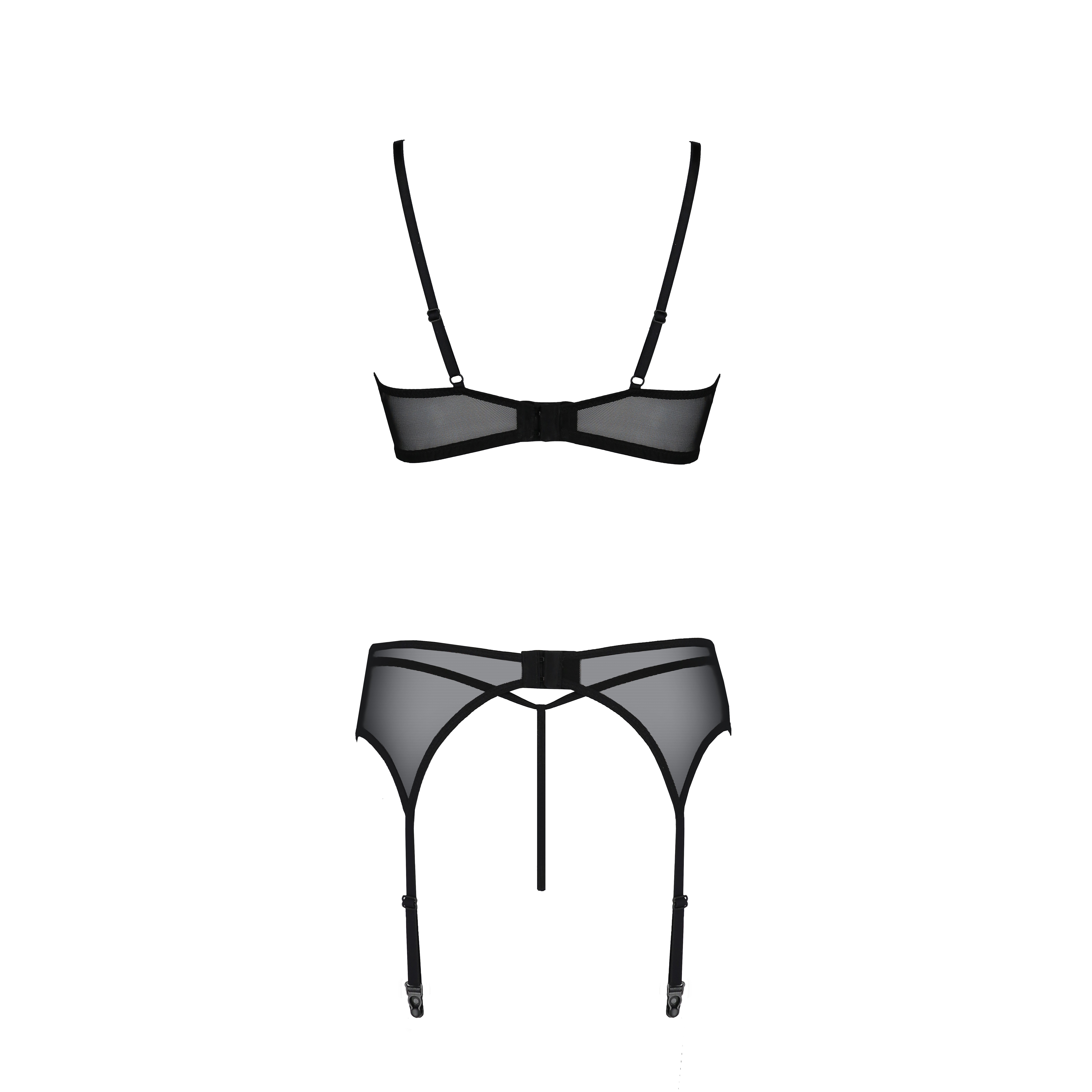 Il set Prímula è composto da tre irresistibili pezzi: un reggiseno, un delicato perizoma e un reggicalze che si adatta perfettamente al corpo mantenendo l'armonia del design.