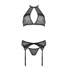 Il set Satara, composto da reggiseno, perizoma e reggicalze, è la scelta perfetta per chi desidera una lingerie bella e dal tocco irresistibilmente sensuale.