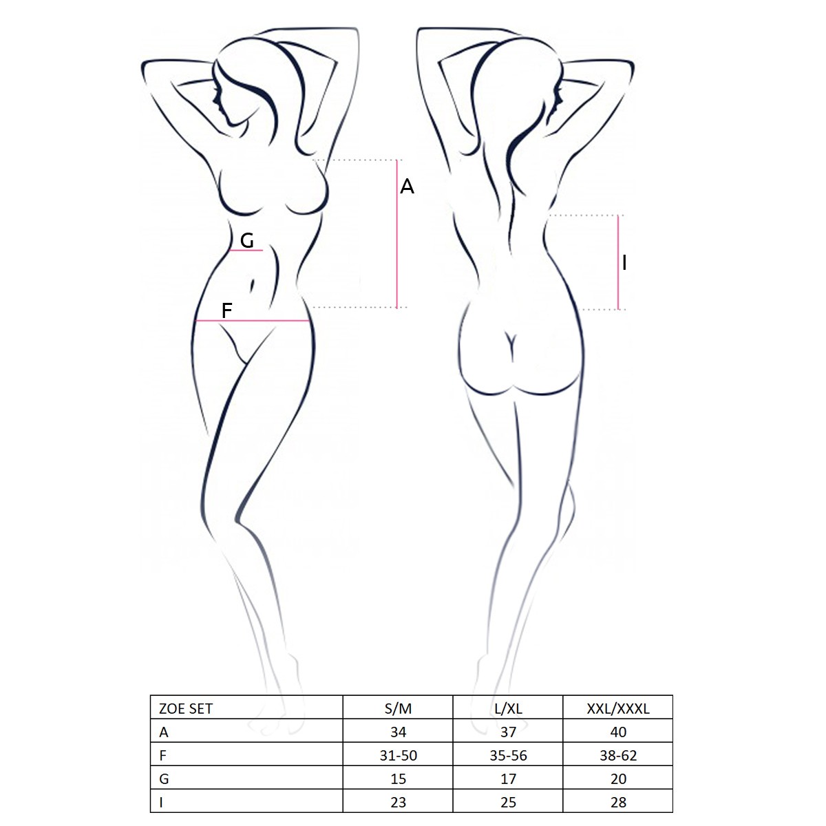 Il set comprende un perizoma dal design moderno e seducente, che sottolinea la femminilità attraverso dettagli specifici. L'uso di gommini per le spalline, simili a quelli utilizzati nei reggiseni, garantisce una vestibilità sicura e confortevole, adattandosi perfettamente al corpo senza compromettere lo stile.