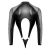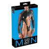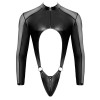 Il body nero aderente di Svenjoyment presenta maniche lunghe. Ha uno stile provocante grazie al tessuto opaco e opaco con inserti trasparenti in powernet. È morbido ed elastico per una vestibilità molto confortevole. Presenta un ampio scollo con anelli sul davanti. Il body ha anche un collo alto e una cerniera sul petto. C'è anche una cerniera imbottita sul taschino.
