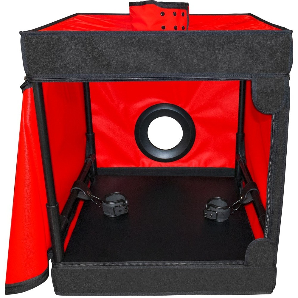 La scatola BDSM chiusa, Bukkake di Secret Dome, è perfetta per giochi fantasiosi e fuori dal comune. La robusta scatola, con il suo sistema di innesto a tubo e il robusto coperchio, può essere assemblata rapidamente e sarà pronta all'uso in pochissimo tempo. Con un grande foro su entrambi i lati. Il foro per la testa è dotato di una cerniera e di un ampio collare regolabile. Inoltre, offre un comodo accesso attraverso la porta con cerniera. L'illuminazione a LED e il morbido tappetino garantiscono un grande comfort. Le manette in dotazione possono essere posizionate all'interno a seconda delle necessità. Le morbide manette imbottite possono essere indossate e regolate rapidamente grazie alle fibbie di chiusura.