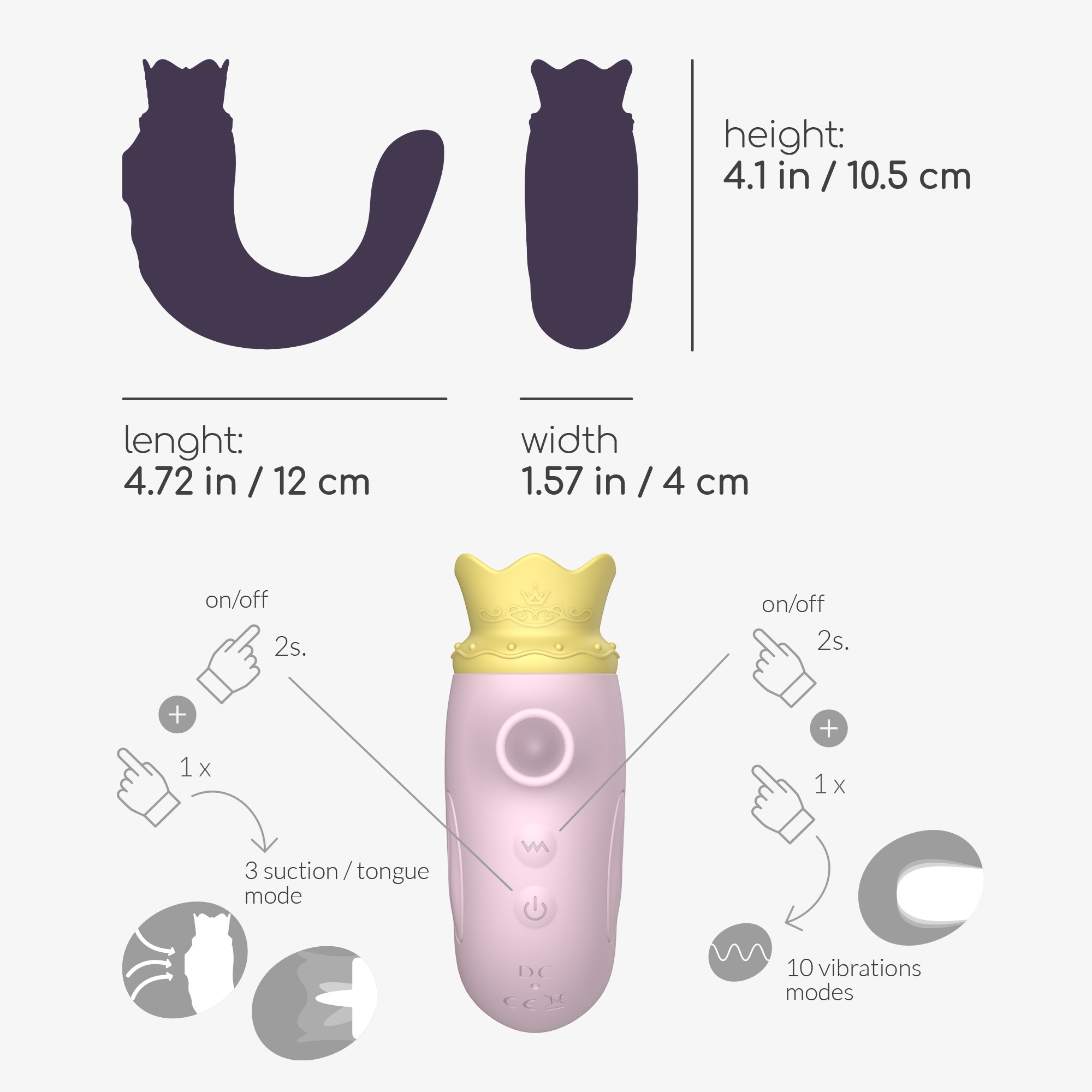 Este estimulador em forma de foca é o rei do oceano e está pronto para a banhar nas suas riquezas! Alterne entre 3 espantosos modos de língua e de sucção e termine inserindo a cauda profundamente, enquanto desfruta de 10 modos de vibração.
