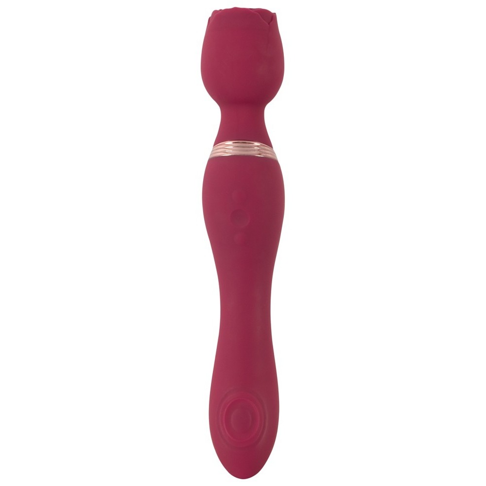 A varinha massajadora Thumping Wand Vibrator da Rosenrot, com um design elegante, apresenta uma rosa fechada como cabeça de massagem. Ambas as extremidades podem ser utilizadas, já que cada uma está equipada com um motor potente — a cabeça em rosa como massajador e o eixo como vibrador.