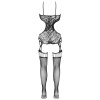 Catsuit sem alças da Cottelli FANTASY, confecionado em rede macia com efeito de ligas. O catsuit apresenta ornamentos em tecido, grandes recortes laterais e um decote profundo à frente com três argolas decorativas. As alças são altamente elásticas para um ajuste confortável. Sem entrepernas para um toque mais ousado. As meias integradas combinam rede mais grossa na zona das ligas com rede fina nas pernas e nos pés. Sem costuras e elástico, garantindo elevado conforto ao vestir.