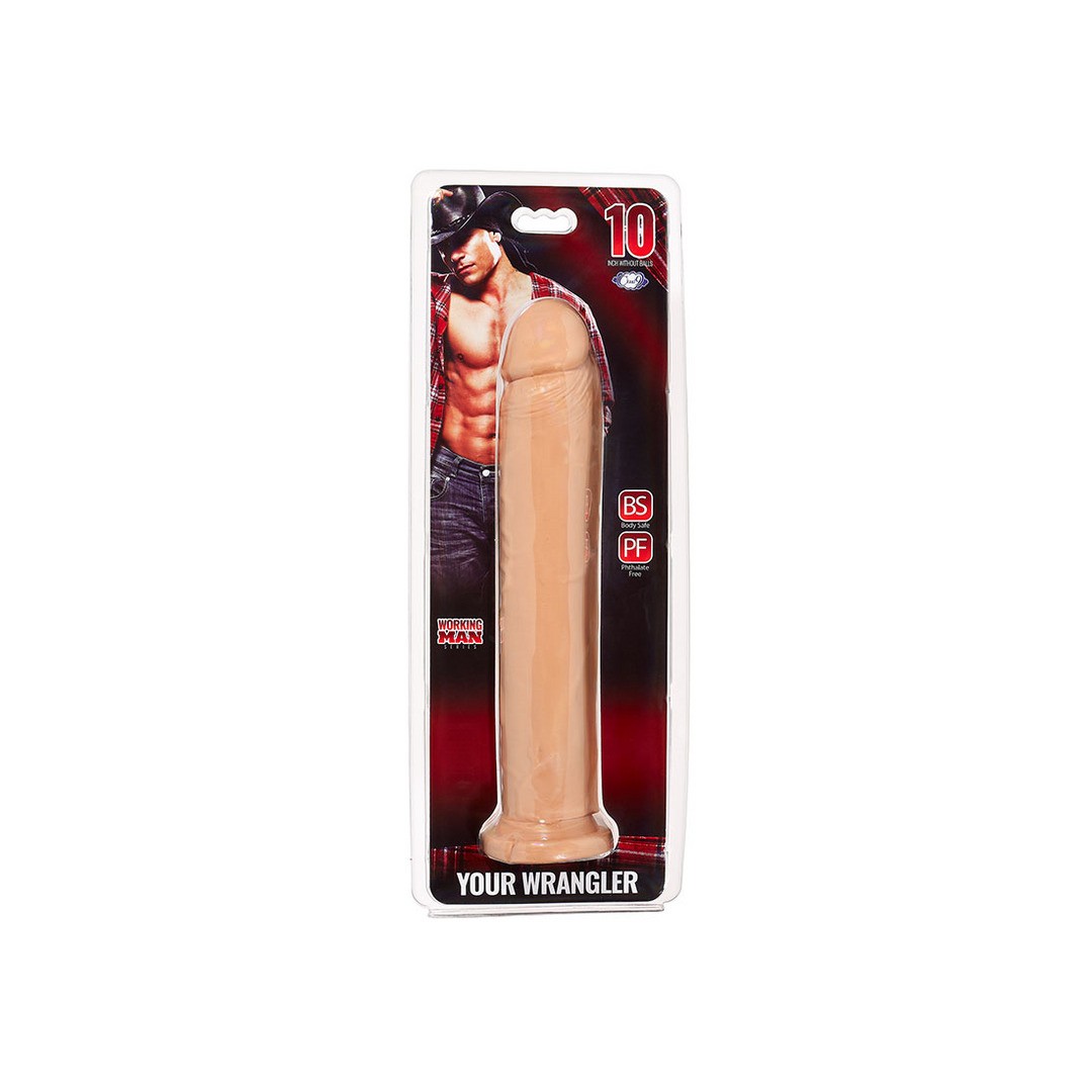 Your Wrangler, dildo realista de 25,4 cm em PVC seguro, com base de ventosa e compatível com arnês.