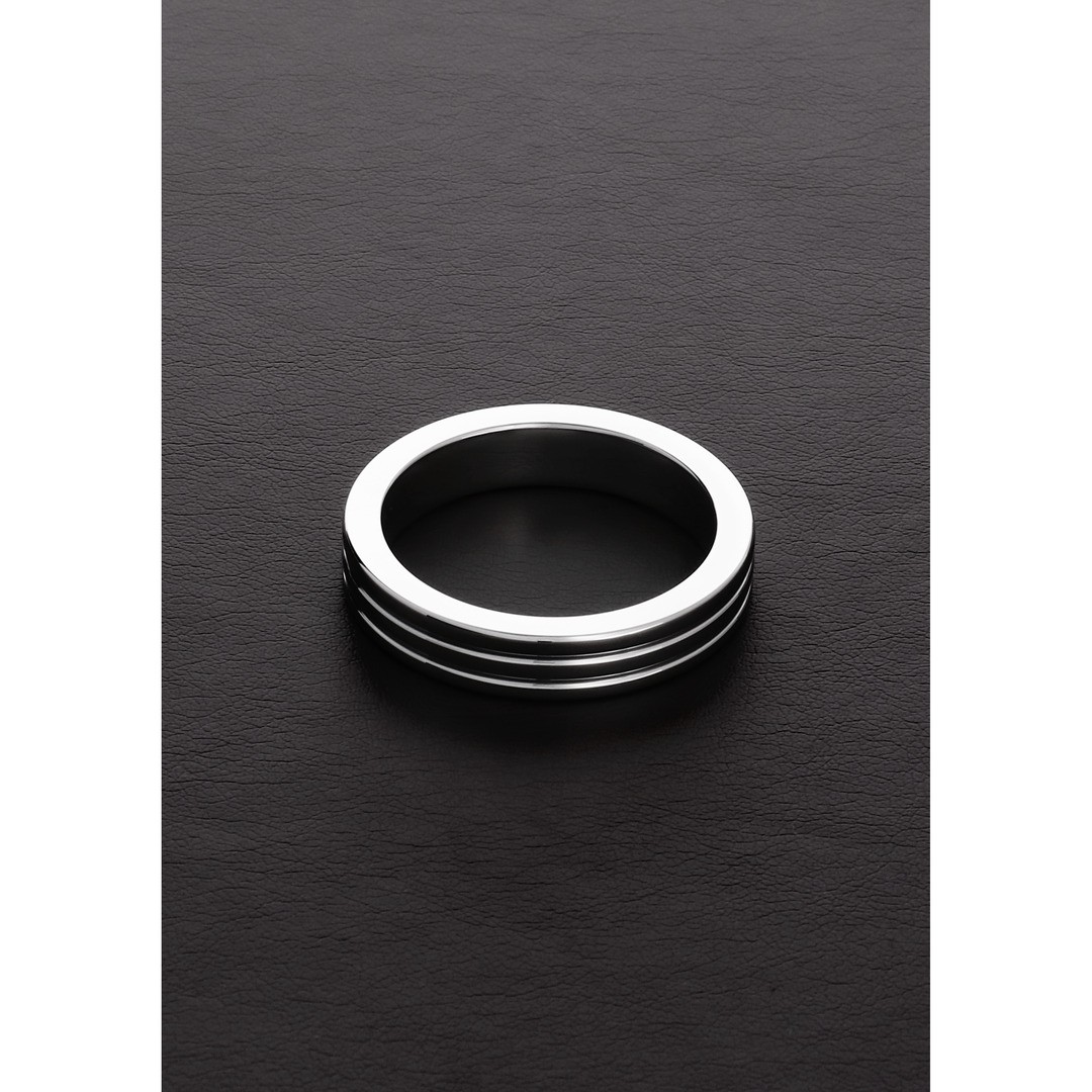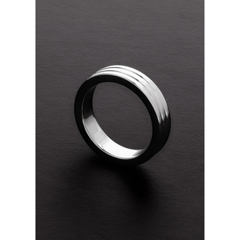 Anel para o pénis em aço inoxidável sólido, 5 cm, com design estriado para prolongar e intensificar o prazer.