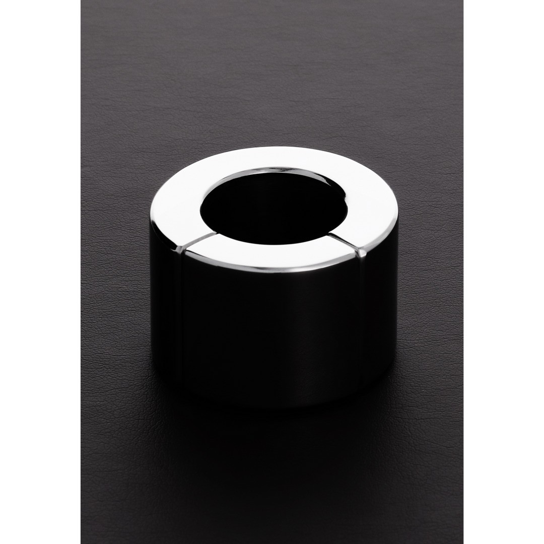 Anel extensor de testículos em aço com ímanes potentes, 4 cm de largura, 3,5 cm de diâmetro interno e 568 g de peso para um puxão intenso.